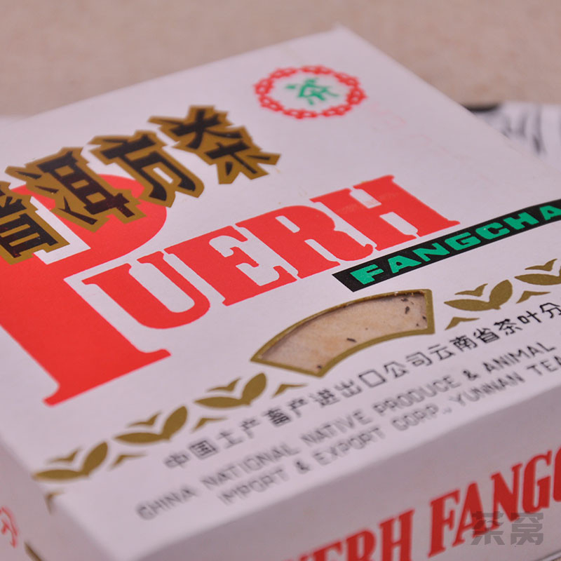 普洱方茶(熟砖)”是由中茶(中国土产畜产进出口公司云南茶叶分公司)1996年出品,勐海茶厂出产的一款熟茶。